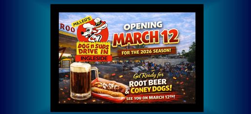 Miller's Dog n Sud has been serving up smiles, memories, and plenty of fun for almost six decades! What started with Jerry and Evelyn Miller back in 1967, has grown into a cherished community tradition. As we gear up for our 59th season, we’re proud to say Miller’s Dog n Suds remains family owned and operated today.